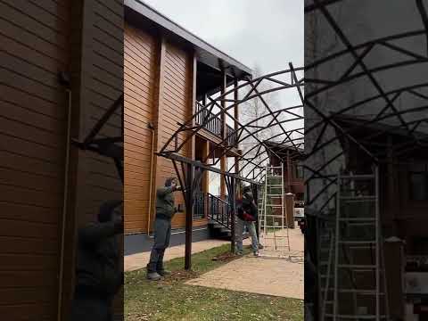 Навесы из поликарбоната Спецкаркас | Сборка навеса на объекте заказчика